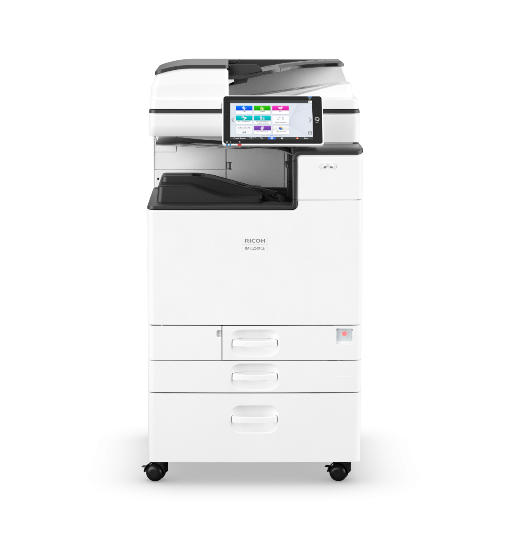 Deze complete en intelligente alles-in-1 A3-printer met een printsnelheid van 25 pagina's per minuut is voorzien van een ARDF en kan printen, kopiëren en scannen in kleur. Het Smart Operation Panel van maar liefst 10,1 inch is voorzien van een intuïtieve touch- en swipe-interface voor een eenvoudige bediening. Om tijd te besparen, licht het Smart Operation Panel op zodra u in de buurt komt. Met de Ricoh IM C2500A kunt twee keer zo snel dubbelzijdig scannen met een snelheid tot 240 afb. per minuut.